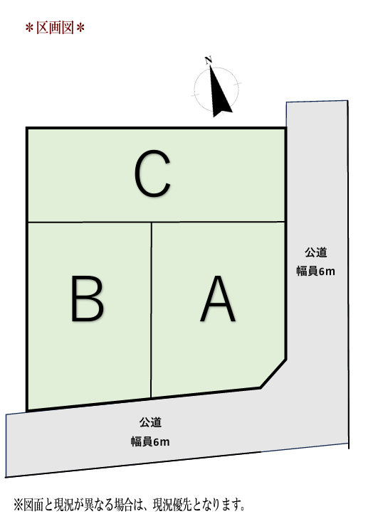 ●C区画は東道路で奥行きのある形状