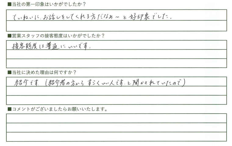 営業スタッフの接客態度は?